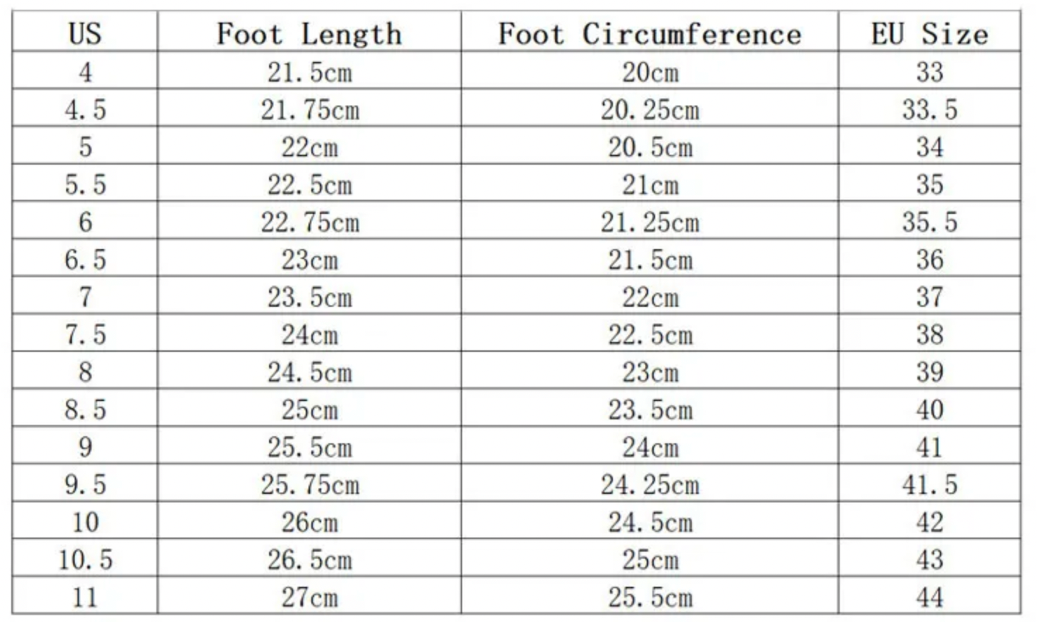 5) Refer to the table in the images to compare the size of your feet in cm to the UK/ European size