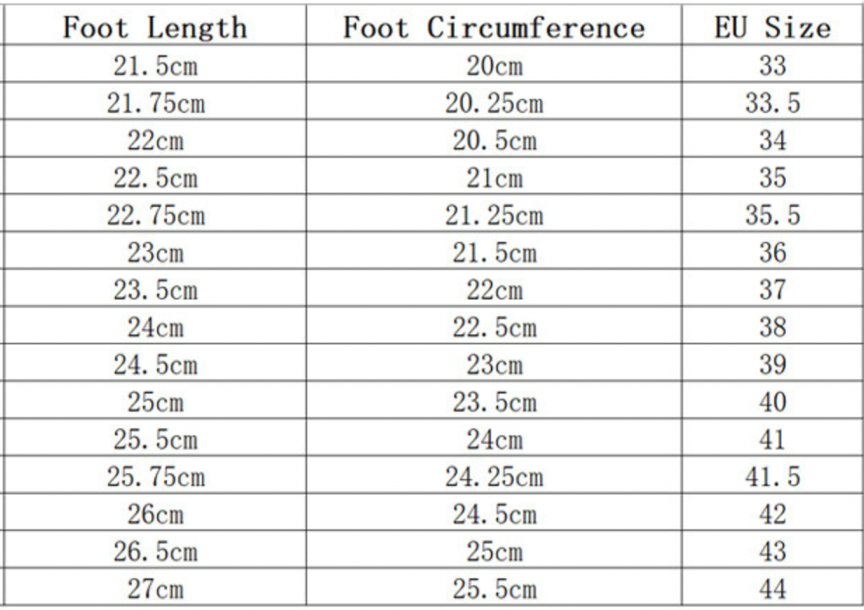 5) Refer to the table in the images to compare the size of your feet in cm to the UK/ European size