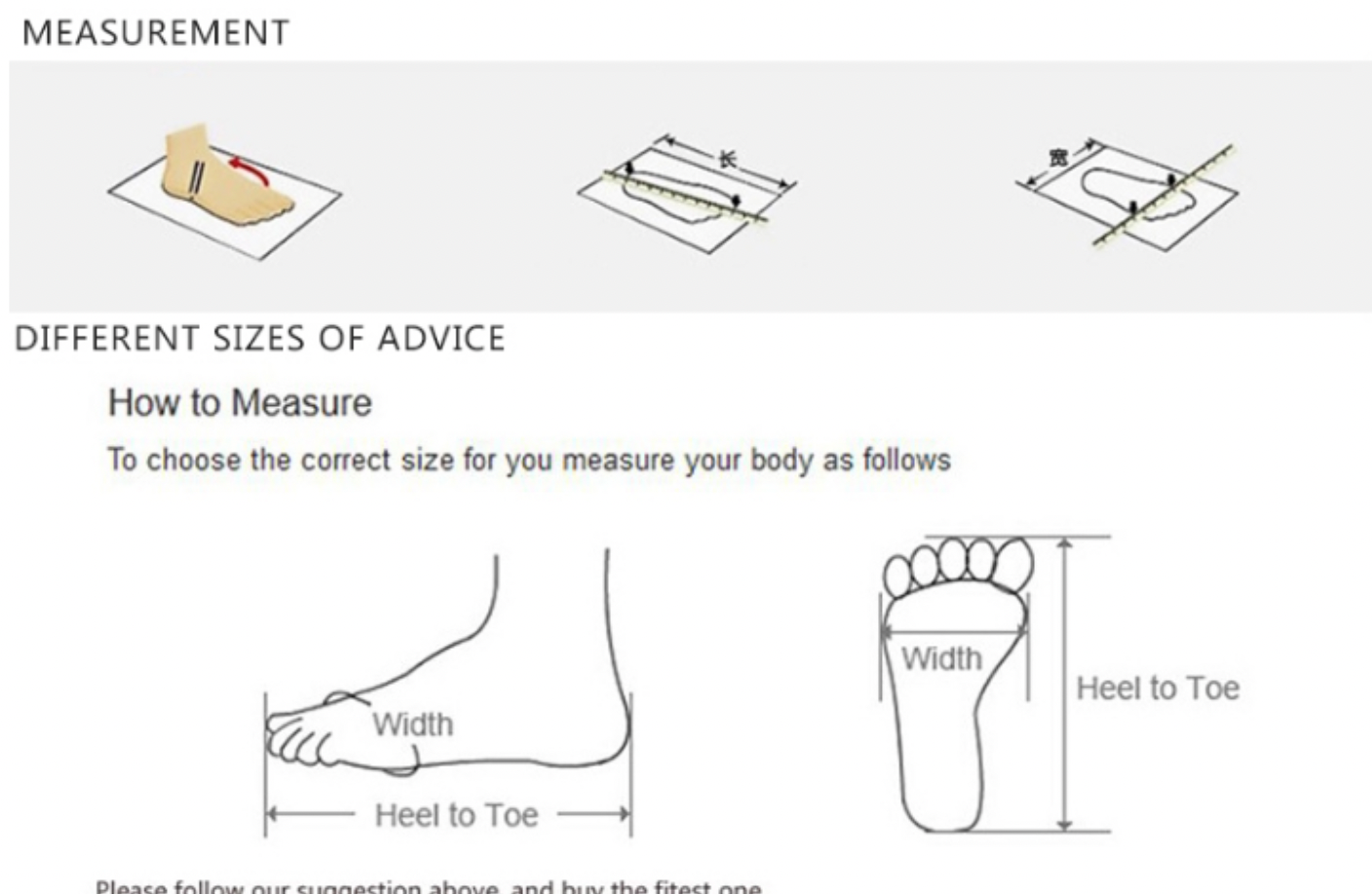 Step 3: (The most important step) Measure your feet to ensure you have the correct size - see guide below and images.