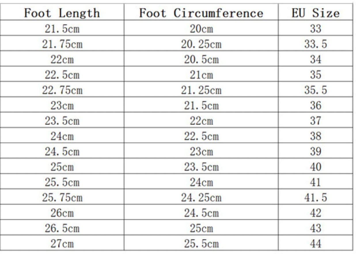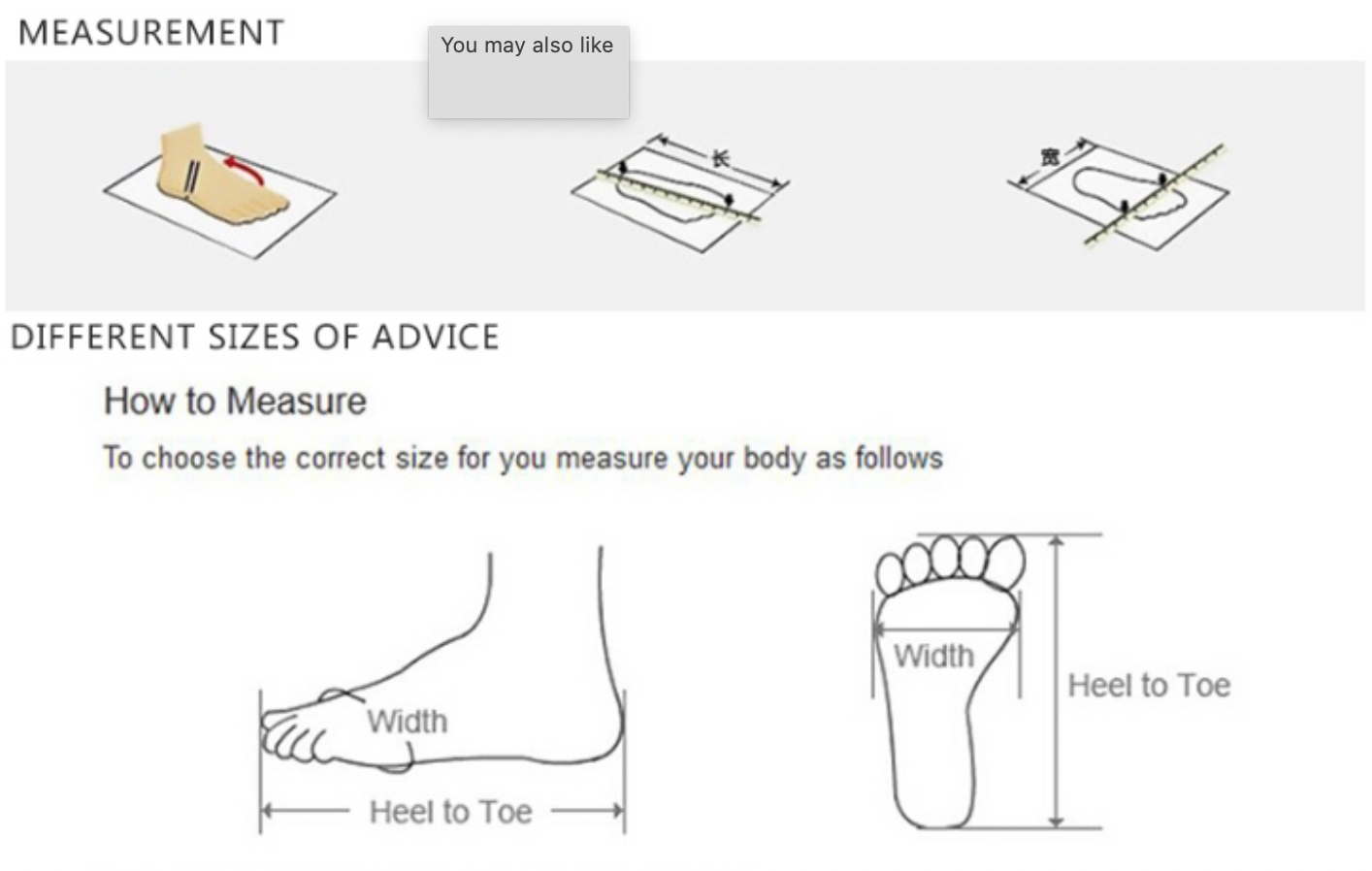 Step 3: (The most important step) Measure your feet to ensure you have the correct size - see guide below and images.
